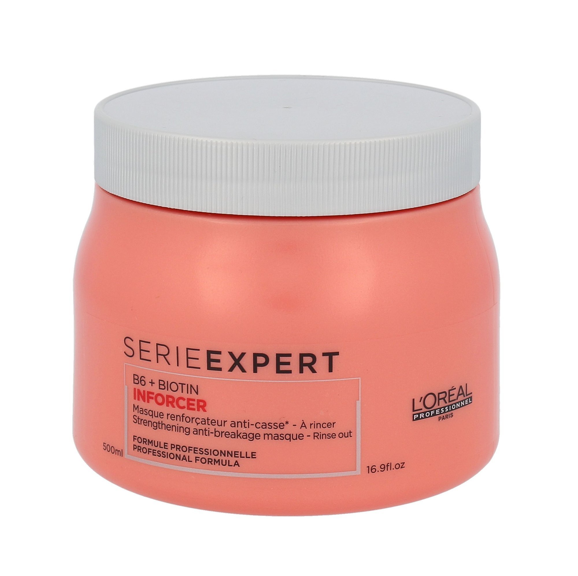 Maska na vlasy ** L´Oréal Professionnel Série Expert Inforcer**. Maska L´Oréal Professionnel Série Expert Inforcer posiluje lámavé a křehké vlasy. Zvyšuje pružnost vlasů a chrání vlasy před dalším poškozením a lámáním. Složení obohacené o vitamíny vlasy vyživuje a dodává jim oslnivý lesk. Obnovuje pružnost a zdravý vzhled vlasů. Hýčkejte své vlasy a dopřejte jim péči a výživu s maskou L´Oréal Professionnel Série Expert Inforcer. **Účinky**: · posiluje vlasy · zabraňuje lámání a třepení · dodává vlasům lesk **Použití**: Aplikujte do ručníkem vysušených vlasů. Nechte působit 3-5 minut a poté důkladně opláchněte.