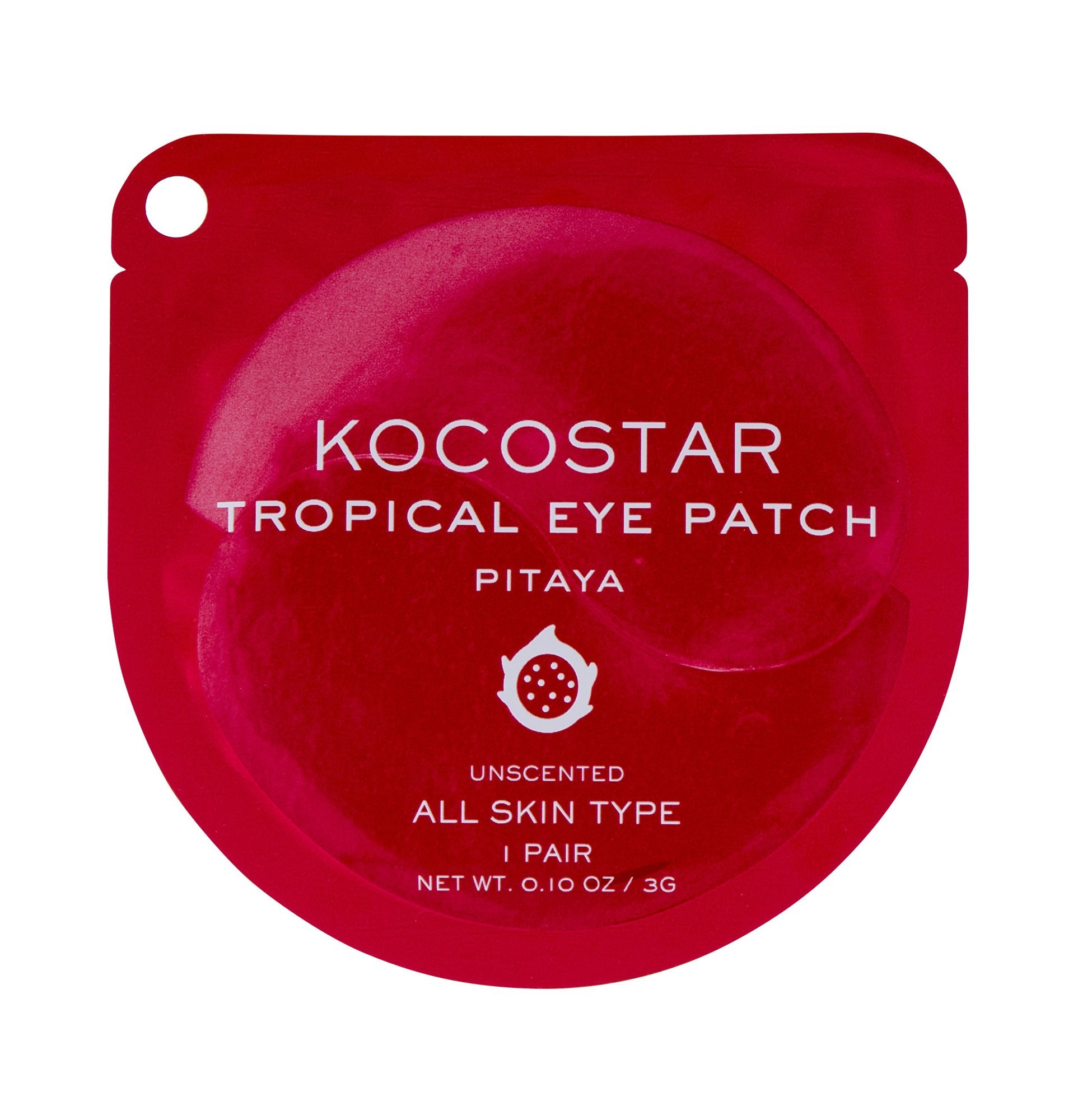 Maska na oční okolí Kocostar Tropical Eye Patch Pitaya je hedvábně jemná, naplněná hydratačním gelem obohaceným o extrakt z tropického ovoce.
