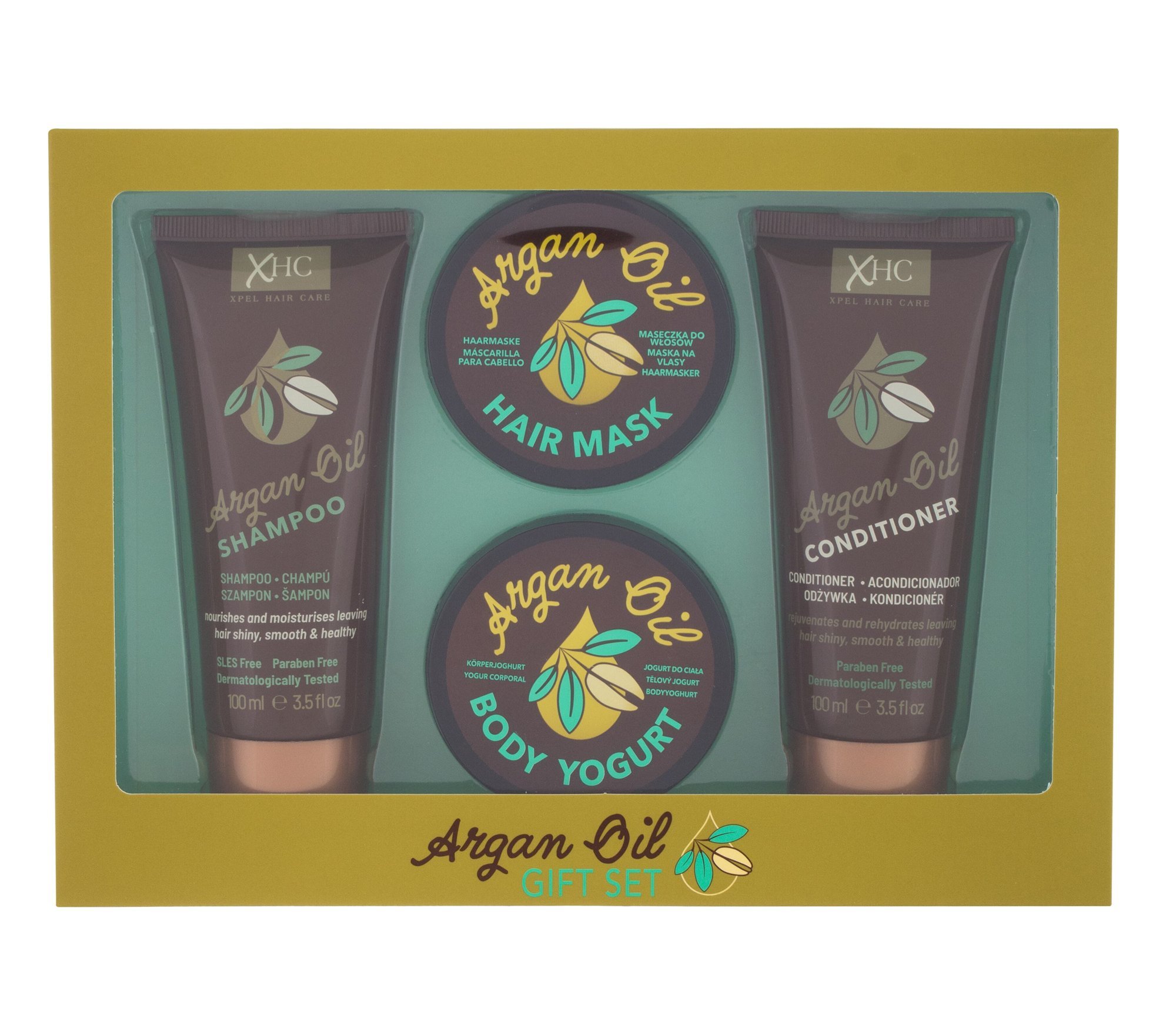 Xpel Argan Oil šampon Argan Oil 100 ml + kondicionér Argan Oil 100 ml + tělový jogurt Argan Oil 50 g + maska na vlasy Argan Oil 50 g