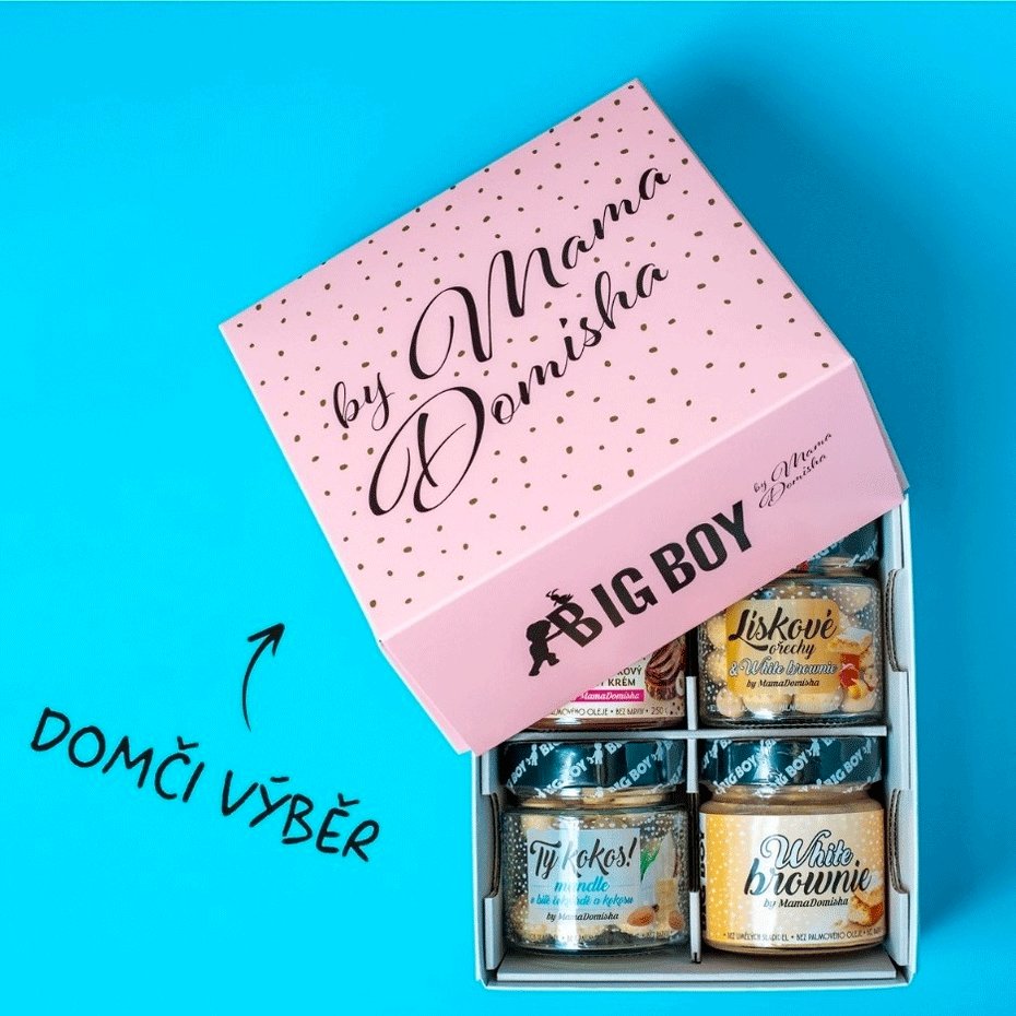 Dárková krabička DOMČI VÝBĚR (740 g) je krásná dárková krabička s nadupaným obsahem: těšit se můžeš na mandličky obalené v bíle čokoládě s kokosem Ty kokos, lískooříškový krém White Brownie, kakaová Jarmila Light (bez cukru) a Lískové oříšky v čokoládě White Brownie. Tohle bude parádní dárek pro tebe i tvoje blízké.