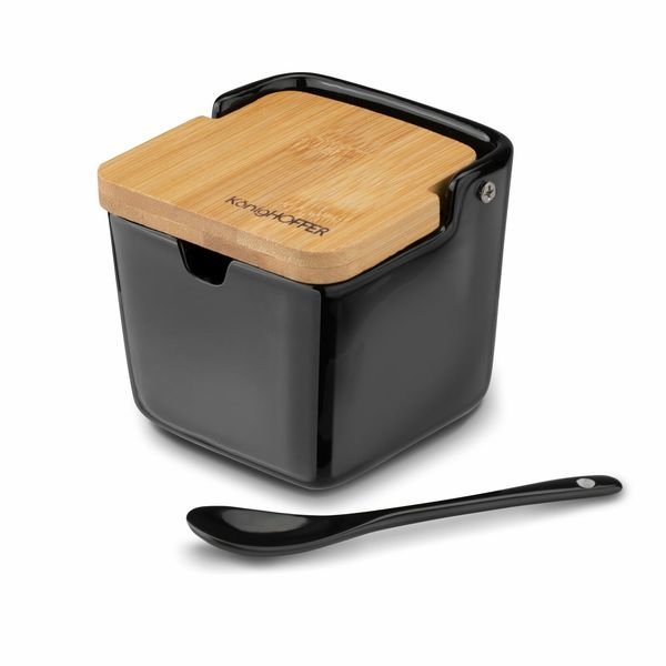 dóza 270ml, černá porcelán+lžička keram./bambus, Königsh.