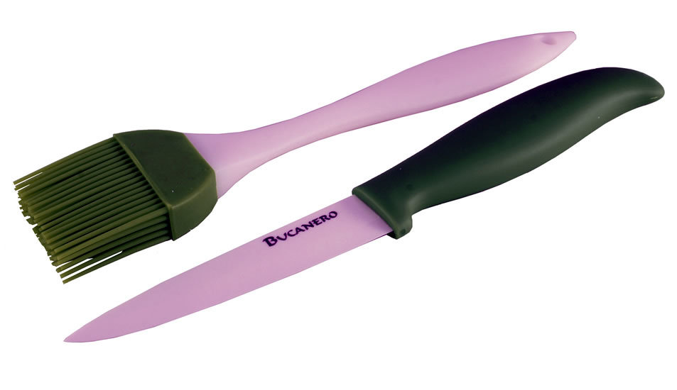 Univerzální keramický nůž 10 cm a silikonová mašlovačka. Dodáváno v zelené nebo oranžové barvě (bez možnosti výběru). číst celé