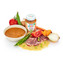 Složení: voda, *mrkev, *cibule, *hrášek, *vepřové maso (9%), *kuskus (z PŠENIČNÉ krupice) (3,5%), *rajčatový protlak, *řepkový olej, *bylinky (petržel, oregano). Zelenina 50%. *V BIO kvalitě. Obsahuje lepek.