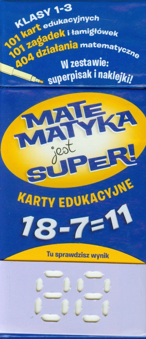 Z zestawem kart edukacyjnych MATEMATYKA JEST SUPER żadna klasówka nie będzie zbyt trudna! Graj, baw się i ucz przeglądając karty z działaniami matematycznymi i ciekawymi zagadkami. Dołączony superpisak pozwoli Ci łatwo wytrzeć błędną odpowiedź i spróbować jeszcze raz. Prawidłowy wynik pierwszego...
