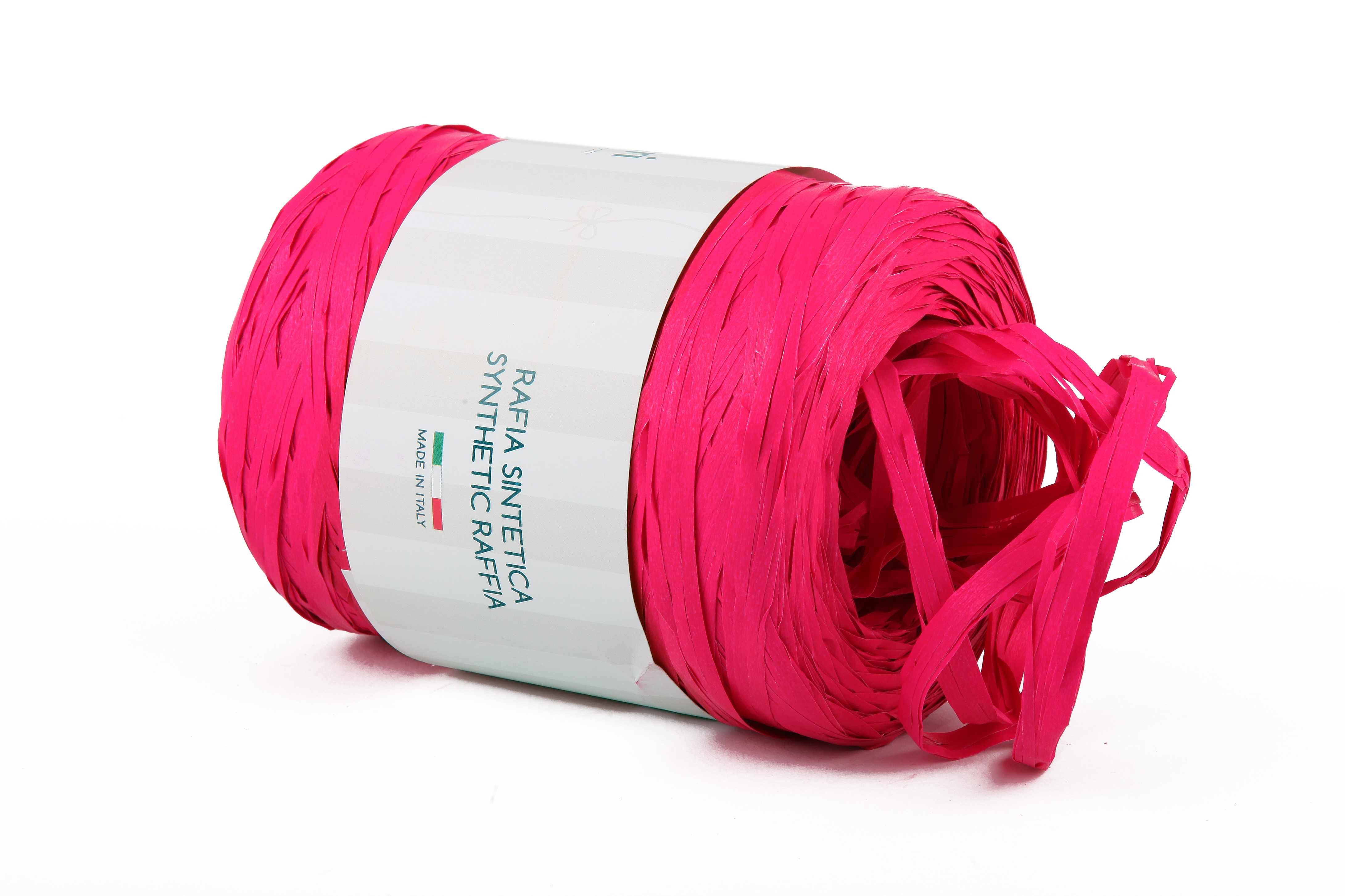 Klubo matné syntetická rafie v cyklámenové barvě. Páska syntetické rafie je nová klasika ve výzdobě, dává obalu přirozený vzhled, přičemž je odolná vůči vodě, velmi praktická funkce typická pro polypropylenové pásky. Vyrobeno v Itálii.