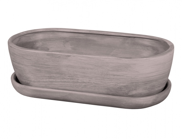 Truhlík KAKTUS O GREY + podmiska keramický matný 34cm