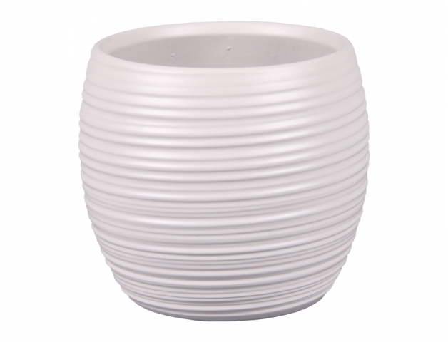 Keramický matný obal na květník zdoben proužky. Barva: světle šedá. Průměr: 13 cm. číst celé