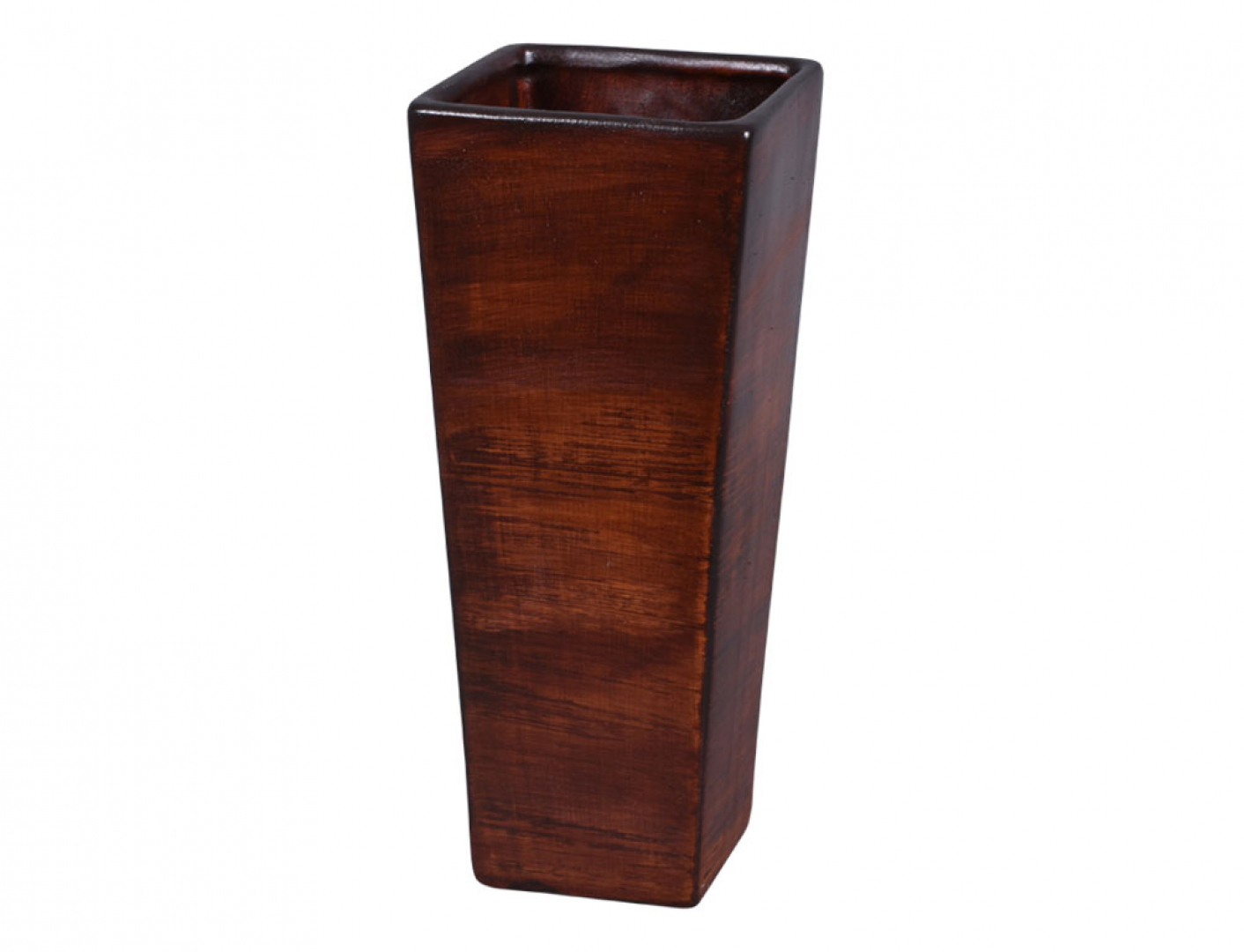 Keramická váza v matném provedení. Čtvercový půdorys a tlumené moderní barvy fungují velice elegantně, zejména v moderním interiéru. Vyrobena ze speciálního bílého jílu, s vysokým obsahem kaolinu. Díky němu je váza odolná a pevná. Vhodná do interiéru. Rozměry: šířka 10 cm, výška 26 cm, hloubka 10 cm. Váha: 0,78 kg. Objem: 2,5 l. Barva: tmavě hnědá.