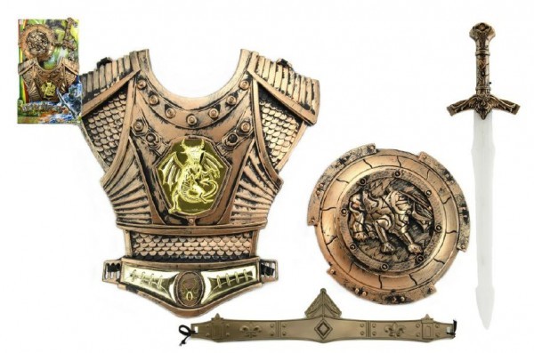 Meč svítící se štítem a doplňky plast 50cm na baterie se světlem na kartě