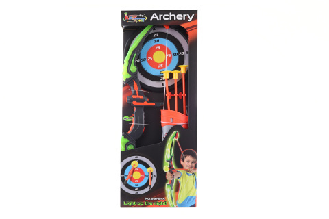 Střelecký set obsahuje Luk, 3 šípy s přísavkou, pouzdro na šípy a terč k zavěšení. Materiál plast. Baleno v otevřené krabici. Rozměry balení cca 24x63x5 cm. Věk 6+