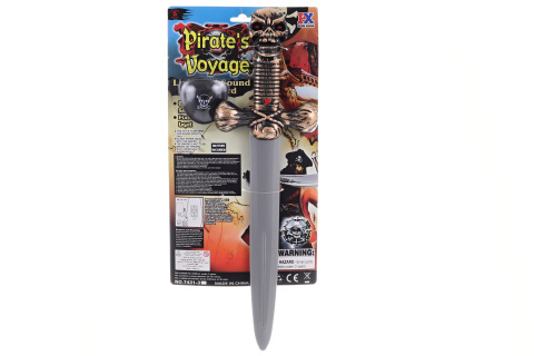 Pirátský meč na baterie s páskou přes oko. Materiál plast. Napájení na 3xAG13 baterie, které jsou součástí balení. Baleno na kartě. Rozměry balení 20x35x3 cm. Věk 3+ číst celé