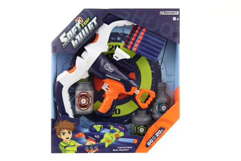 Produkt je balen v otevřené krabici o rozměrech cca 40x40x6 cm, což usnadňuje rychlé rozbalení a okamžitou hru. Kuše je vyrobena tak, aby byla bezpečná a zároveň zábavná pro děti od 8 let.