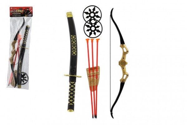 Ninja sada plast meč, hvězdice 2ks, luk + šípy na přísavku 3ks v sáčku 17x60x5cm