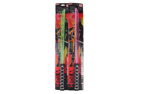 Samurajský meč na kartě. Po vložení baterií svítí a vydává zvuky. Napájení na 3 AAA baterie (nejsou součástí balení). Délka meče cca 65,5 cm. Rozměr balení cca 71 x 12,5 x 3,5 cm. Věk 3+ číst celé