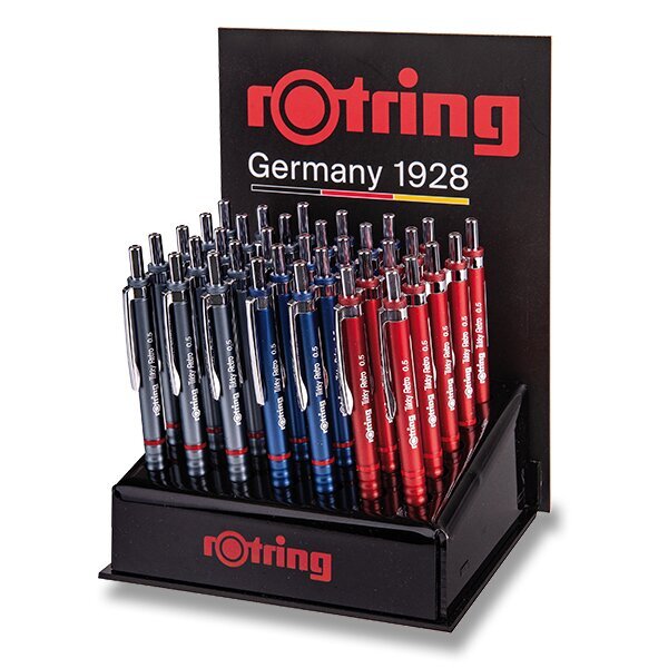 Stojánek 35 ks mechanické tužky Tikky Retro s plastovým tělem a kovovými doplňky ve stříbrné barvě. Dolní část s jemným vroubkováním pro lepší úchop. Skrytá pryž umístěná v stiskací koncovce mechanické tužky. Ve 3 barevných provedeních. číst celé