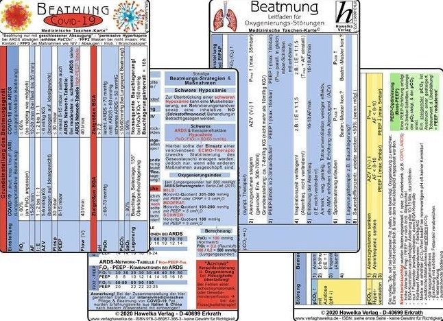 COVID-19 Beatmungs-Karten Set 2020 (2 Karten Set) - Respirator-Einstellungen: COVID19 mit ARDS oder mit respiratorischer Insuffi