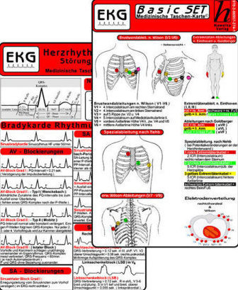 EKG Basic Set - Herzrhythmusstörungen, EKG Auswertung & Anleitung, 3 Medizinische Taschen-Karten (německy)