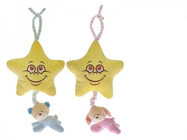 Hvězdička plyš 20cm s medvídkem 10cm natahovací hrající strojek asst 2 barvy v sáčku