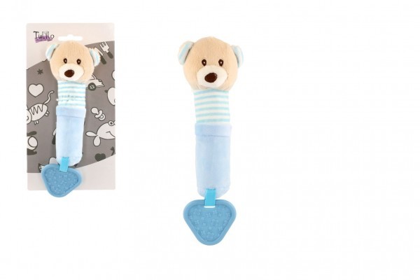 Pískátko/kousátko medvěd plyš 21cm modrý na kartě v sáčku 0+