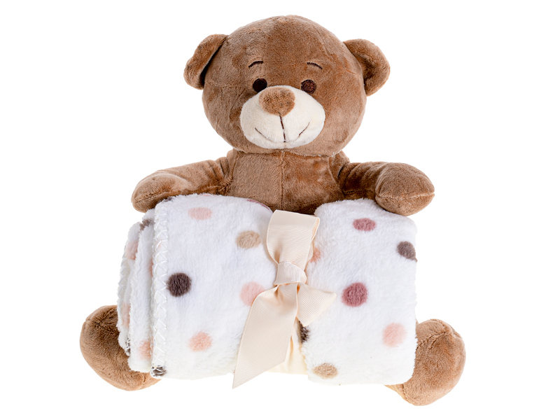 Medvídek plyšový 25cm sedící s dečkou 90x75cm 0m+ v sáčku
