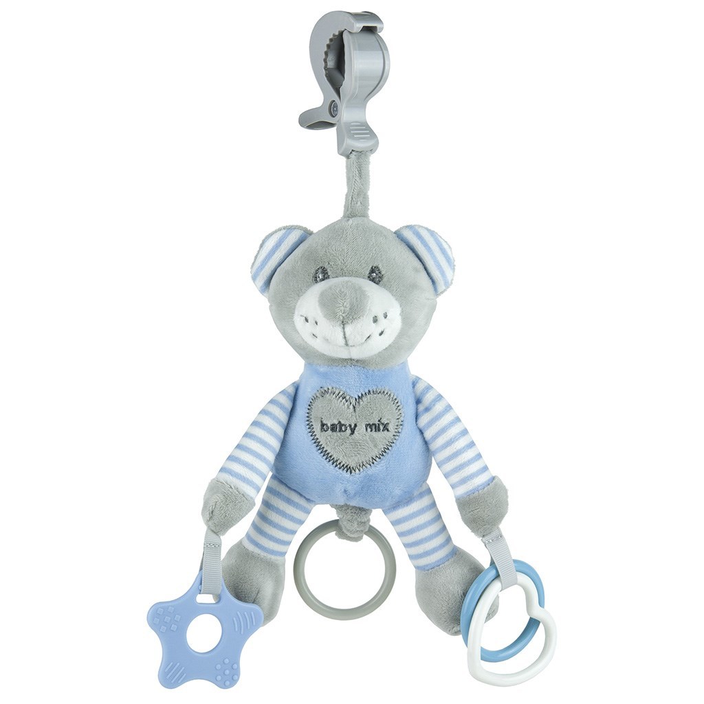 Krásná barevná plyšová hračka Baby Mix ve tvaru medvídka pro miminka. Hračka má barevné kousátka a plastový klip na uchycení hračky ke kočárku, po natáhnutí vibruje. Výška cca 22 cm. Vhodné pro děti od prvních dnů života.