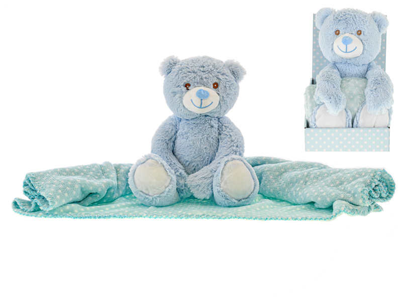 Medvídek plyšový 26cm sedící s dětskou dekou 75x75cm v krabičce