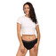 Moderní, spolehlivé a pohodlné menstruační kalhotky značky Dorina jsou vhodné pro noční nošení při normální i při silné menstruaci, protože mají vzadu prodlouženou savou vrstvu. Jsou vyrobené z hladkého recyklovaného mikrovlákna, které dobře vypadá a je příjemné na nošení. Skonči s věčným vyhazováním použitých jednorázových vložek a tamponů. Vypere - a znovu oblékni. S kalhotkami Dorina zažíváš pocit pohodlí a svobody. Černé menstruační kalhotky na noční nošení Dorina menstruační kalhotky patří díky vysoké savosti a pohodlnému střihu mezi produkty, které si okamžitě oblíbíte. Dotyková vrstva těchto menstruačních kalhotek je z hladkého, pocitově příjemného mikrovlákna. Absorpce kalhotek odpovídá objemu 50 ml, čímž se řadí mezi kalhotky s největší savostí na trhu, které jsou vhodné i na velmi silnou menstruaci. Vysoce savá čtyřvrstvá vložka nepropustí tekutinu, brání množení bakterií i vzniku zápachu, ale zároveň je tenká a nenápadná. Složení: Menstruační kalhotky jsou z příjemné organické bavlny. Vnitřní i vnější: 56 % organická bavlna, 38 % modal, 6 % elastan Dorina a udržitelná móda Dorina je značka dámského spodního prádla, která vznikla v Německu. Ženy obléká od roku 1968 a 99 % jejích produktů má certifikaci Oeko-Tex a GOTS. Spodní prádlo Dorina vyniká kvalitou, pohodlnými střihy a pěkným designem. Navíc značka usiluje o co nejvíce udržitelnou výrobu. Menstruační kalhotky jsou pro tebe novinka? Pokud potřebuješ více informací o menstruačních kalhotkách, doporučujeme přečíst si náš článek na blogu: Jak si vybrat menstruační kalhotky?Najdeš tam informace: Z čeho menstruační kalhotky jsou a jak fungují Co je při výběru menstruačních kalhotek důležité Jak dlouho menstruační kalhotky vydrží Jak menstruační kalhotky vyprat Pro koho jsou menstruační kalhotky vhodné Jak správně pečovat o své nové menstruační kalhotky/plavky Před prvním použitím: Než své nové menstruační kalhotky nebo plavky oblékneš poprvé, je potřeba je vyprat - buď v ruce, nebo v pračce na šetrný program do 40 °C. Tím se aktivují savé vrstvy a prádlo se připraví na správné fungování. Nepřidávej aviváž ani bělidla, mohly by narušit funkčnost. Po každém použití: Nejprve prádlo důkladně vymáchej ve studené vodě. Tento krok je zásadní - studená voda pomáhá odstranit krev, zatímco horká by ji mohla „zatáhnout“ do vláken a vytvořit skvrny. Praní: Po vymáchání můžeš kalhotky nebo plavky vyprat v pračce - ideálně v ochranném sáčku, na šetrný program do 40 °C. Vyhni se aviváži a bělidlům, které snižují savost a nepropustnost materiálu. Sušení: Menstruační prádlo nepatří do sušičky ani na topení. Suš ho volně na vzduchu, nejlépe ve stínu - vysoké teploty by mohly poškodit funkční vrstvy a zkrátit životnost prádla. Žehlení: Kalhotky ani plavky nežehli. Teplo z žehličky může nenávratně poškodit voděodolnou membránu, a tím i funkčnost celého prádla. Tip: Když najdeš menstruační prádlo, které ti sedí a vyhovuje, zaslouží si tu nejlepší péči. Díky správnému zacházení ti bude spolehlivě sloužit opravdu dlouho. Rady, jak na to, najdeš v našem článku.