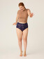 Pohodlné menstruační kalhotky značky Modibodi jsou vhodné pro denní nošení při středně silné a silné menstruaci. Jsou vyrobené z jemného bambusového úpletu a merino vlny, proto jsou velmi příjemné. Menstruační kalhotky pro normální a silnou menstruaci Nepropustné prádlo australské značky Modibodi po zásluze patří ke světové špičce. Vyniká spolehlivostí, kvalitou materiálů, inovativními technologiemi i krásným designem. Menstruační kalhotky Modibodi Classic Full Brief Moderate-Heavy jsou určené na střední a silnou menstruaci. Kalhotky mají savost jako 2 až 3 tampony (15 ml). Pocit sucha zajišťuje dotyková vrstva je ze 100% merina. Merino odvádí vlhkost a je antimikrobiální. Složení: Menstruační kalhotky jsou z příjemné bambusové viskózy. Vnější vrstva: 95 % bambusová viskóza, 5 % spandex. Vnitřní vložka: merino vlna, polyester, polyamid. Praní a sušení: Kalhotky po použití šetrně propláchni ve studené vodě. Následně per v pračce na 30 stupňů. Doporučujeme použít prací sáček na jemné spodní prádlo. Nepoužívat aviváž, nesušit v sušičce. O Modibodi Produkty značky Modibodi jsou alternativou k jednorázovým výrobkům. Cílem značky je šetrná výroba, férové pracovní podmínky v celém výrobním řetězci a malá ekologická stopa. Australská značka Modibodi propaguje přirozenou krásu bez retuší a snaží se menstruaci i inkontinenci zbavit společenských stigmat. Menstruační kalhotky jsou pro tebe novinka? Pokud potřebuješ více informací o menstruačních kalhotkách, doporučujeme přečíst si náš článek na blogu: Jak si vybrat menstruační kalhotky?Najdeš tam informace: Z čeho menstruační kalhotky jsou a jak fungují Co je při výběru menstruačních kalhotek důležité Jak dlouho menstruační kalhotky vydrží Jak menstruační kalhotky vyprat Pro koho jsou menstruační kalhotky vhodné
