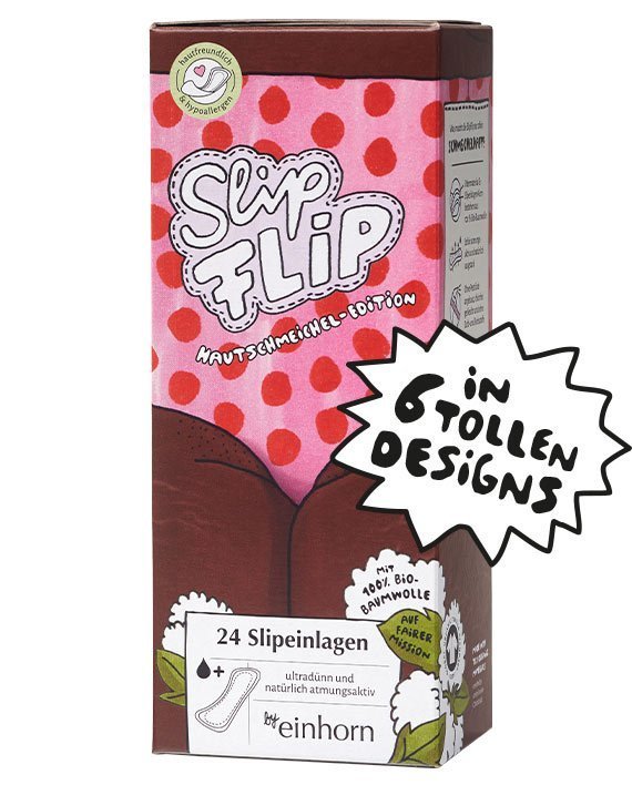Už žádné schovávání vložek po skříňkách! Slipovky s šesti unikátními designy od ilustátorky Sandry Bayer rády vystavíte všem na oči. Vložky jsou savé, super tenké a měkoučké. Horní vrstva z BIO bavlny s certifikací GOTS přikryje intimní partie hebkým pohodlím. Před prosáknutím vás pojistí film z kukuřičného škrobu. Lepicí proužky drží slipovku pěkně na místě, chráněné jsou udržitelně získaným papírem se silikonovou vrstvičkou. Barviva, parfemace, chlorová bělidla či zbytky pesticidů v nich nenajdete a jsou samozřejmě vegan-friendly.