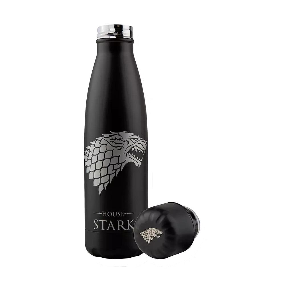 Nerezová láhev na vodu pro fanoušky rodu Starků z Game of Thrones - Hry o trůny vám dopřeje to správné osvěžení! Láhev udrží váš nápoj studený či teplý až 15 hodin. Láhev není vhodná do mikrovlnky ani do myčky nádobí.Materiál: nerezová ocel