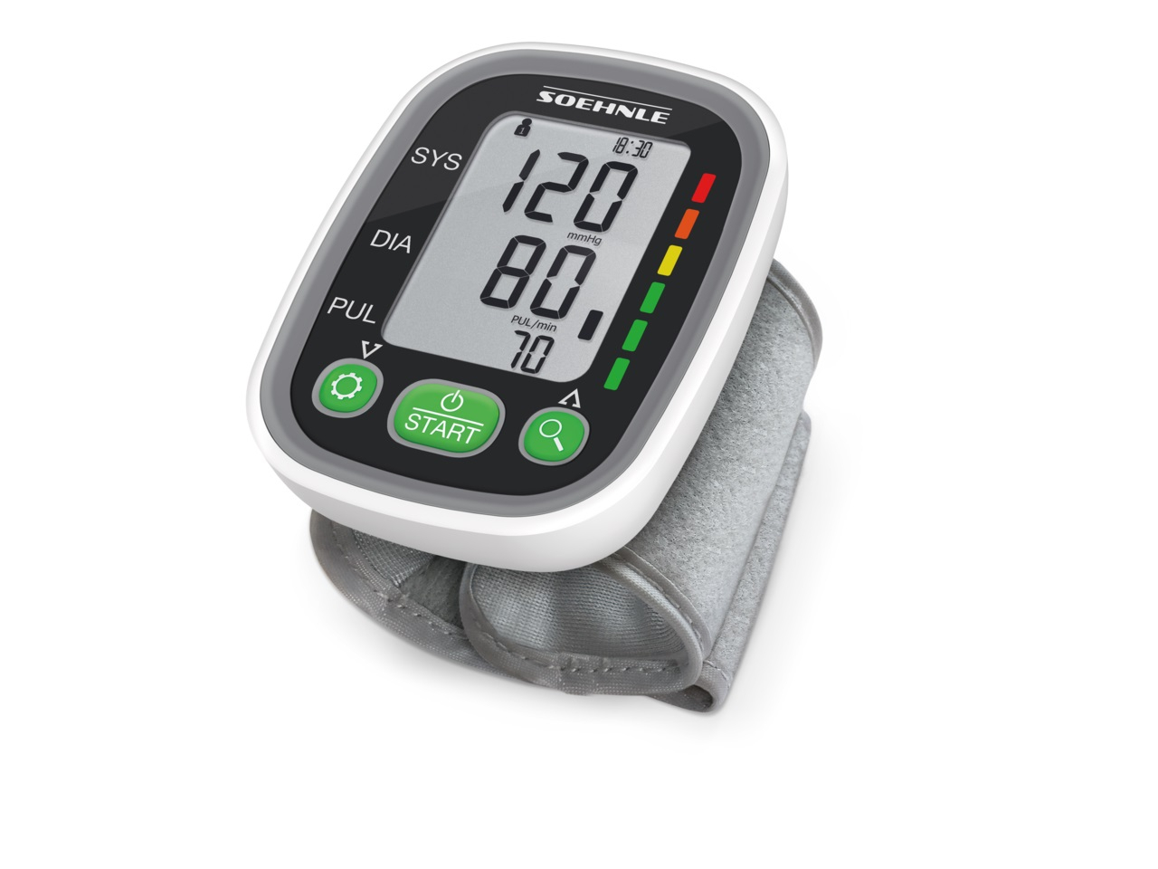 Plně automatický zápěstní monitor tlaku a srdečního tepu, detekuje nepravidelný puls, pohybový senzor, zobrazí průměrnou hodnotu posledních 3 měření, 60 paměťových oken až pro 2 uživatele zvlášť včetně "Návštěvního módu" (Guest mode) bez paměti hodnot. Zobrazení naměřených hodnot v tabulce dle Světové Zdravotnické organizace (WHO), LCD obrazovka (3,3 x 4,5 cm) - Systole, diastole, tep. Příjemný náramek (13,5 - 21,5 cm). Včetně baterií (2 x AA);Plne automatický zápestný monitor tlaku a srdečného tepu, detekuje nepravideľný puls, pohybový senzor, zobrazuje priemernú hodnotu posledných 3 meraní, 60 pamäťových okien až pre 2 uživateľov zvlášť včetne "Návštevného módu" (Guest mode) bez pamäti hodnȏt. Zobrazovanie nameraných hodnȏt v tabulke podľa Svetovej Zdravotnickej organizácie (WHO), LCD obrazovka (3,3 x 4,5 cm) - Systola, diastola, tep. Príjemný náramok (13,5 - 21,5 cm). Súčasťou balenie sú baterie (2 x AA)