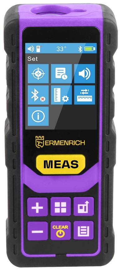 Laserový měřič Ermenrich Reel PRO GL100 používají profesionálové i amatéři při stavebních, opravárenských a inženýrských pracích k měření různých parametrů prostředí, obytných místností a prostor: vzdálenosti, délky, plochy a objemu a také svislice a úhly. Měření je přesné s přesností ±1,5 mm díky laseru s vlnovou délkou 500-535 nm. Laserový paprsek je zelený, který je na denním světle viditelnější než klasický červený paprsek.