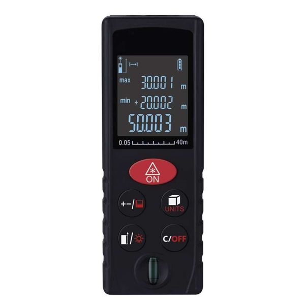 automatické vypnutí: po 3 minutách|jednotky měření: m, ft, in, m², ft², m³, ft³|měřící funkce: délka, plocha, objem, kontinuální měření, pythagoras|měřící vzdálenost: 0,05-40 m|napájení: 2× 1,5 V AAA (není součástí balení)|podsvícený displej: ano|přesnost měření: +/- 2 mm|prodejní obal: 1 ks, krabička|rozměr: 25 × 40 × 110 mm