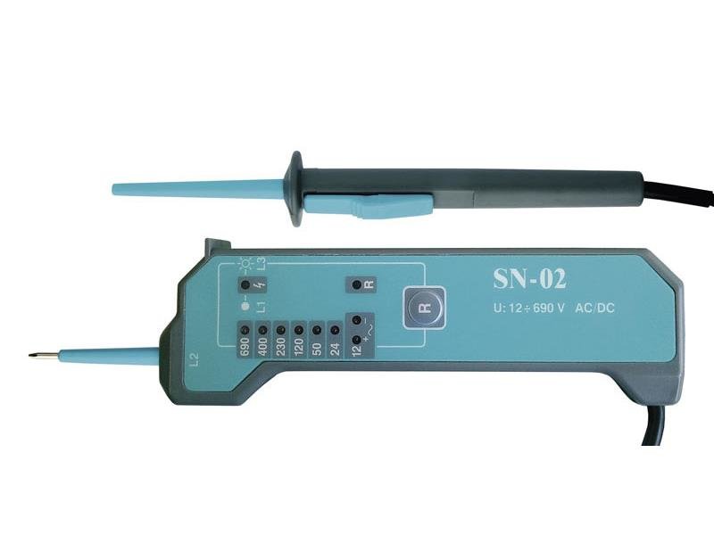 střídavé napětí: 12-690 V stejnosměrné a střídavé napětí: 12 V, 24 V, 50 V, 120 V, 230 V, 400 V, 690 V určení polarity: ano určení fáze a sledu: ano bezkontaktní měření: ne ) nastavení dvou citlivostí: ne signalizace: optická + akustická napájení: 9 V (součástí balení) frekvenční rozsah: 0-60 Hz měření spojitosti obvodů: ano prodejní obal: 1 ks, blistr