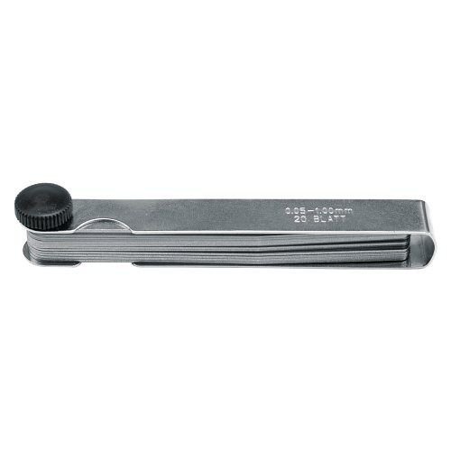 - Obsahuje 20 měrek na spáry s různou tloušťkou od 0,05 do 1,00 mm.