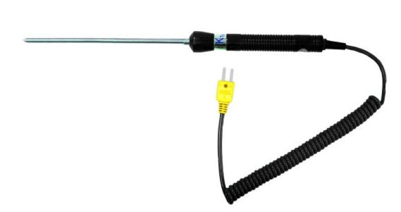 Čidlo teploty typu K pro měření teploty vzduchu a plynu. Tepelně odolná rukojeť. Snímač teploty chráněný kovovým krytem ( prům. 6,5mm ). Délka snímače: 165mm. Rozsah měření: -50 °C … 800 °C, třída přesnosti 2. Pouze pr ThermoMaster a ThermoSpot Vision.