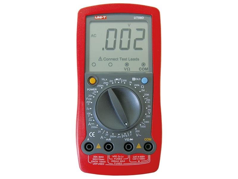 Digitální multimetr UT58D se zdokonalenou konstrukcí, novým designem, velkým displejem. Je opatřen obalem ze stříkané měkké pryže, není nutné další pouzdro.