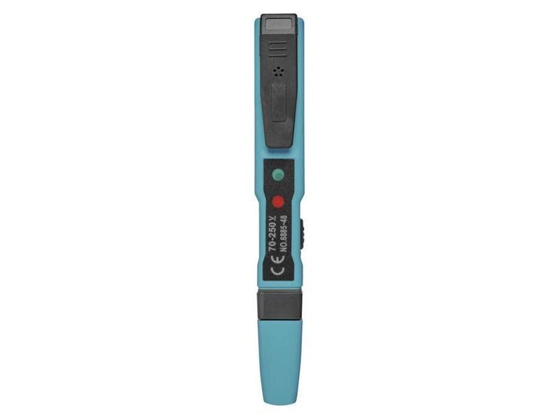 Zkoušečka napětí s optickou signalizací. Zkoušečka je určena ke zjišťování střídavého napětí 70-250 V a stejnosměrného napětí 0-250 V. Zkoušečka zjišťuje také polaritu zdrojů nebo zkrat. Zkoušečka napětí je napájena 2× LR44 (součást balení). Technické parametry: