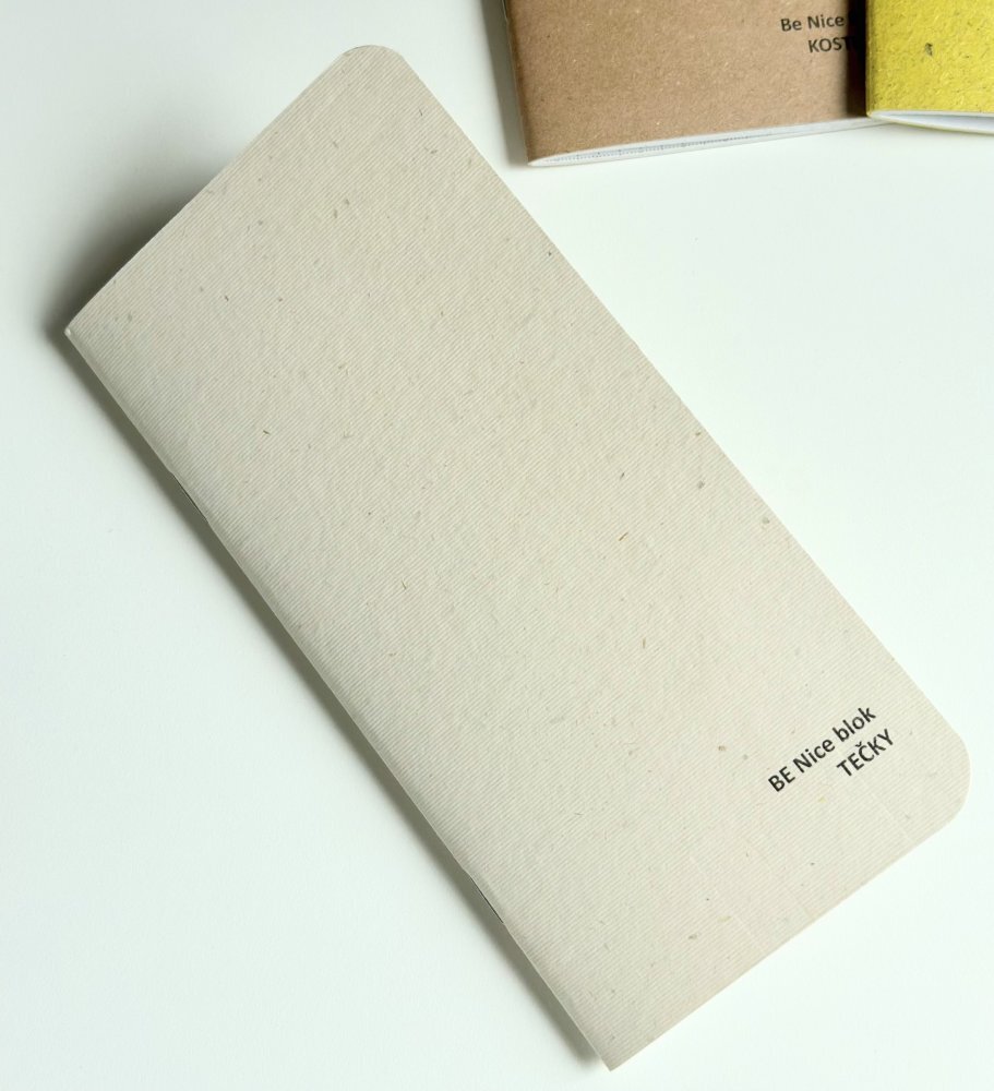 Tento blok do diáře s lineaturou teček byl vyroben v českérodinné tiskárně sídlící kousek od Be Nice. Osobně jsme tak dohlížely na proces jeho výroby.