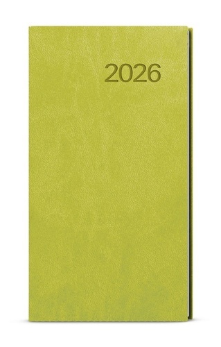 Kapesní týdenní diář v příjemné zelené barvě je vyrobený z jemné, hladké vivelly, která působí luxusně a zároveň je pohodlná na dotek. Díky svému kompaktnímu formátu se snadno vejde do kapsy nebo kabelky, takže jej můžete mít vždy po ruce. Diář je navržen tak, aby nabízel dostatečný prostor pro vaše poznámky a detailní plánování, což vám umožní lépe organizovat svůj čas a dosahovat svých cílů.