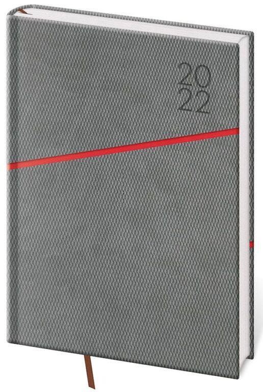 Diáře Grife Desky diáře Grife jsou vyrobeny převážně z šedé matné a strukturované koženky. Šedá koženka je ozdobena barevným pruhem. Diář obsahuje: osobní údaje, plánovač dovolené (měsíční přehled), plánovací kalendář, telefonní předvolby, státní svátky České a Slovenské republiky, mezinárodní svátky, roční výhled, denní layout, adresář, mapa Evropy a České a Slovenské republiky. Formát: 143 x 205 mm Rozsah: 352 stran Kalendárium: denní