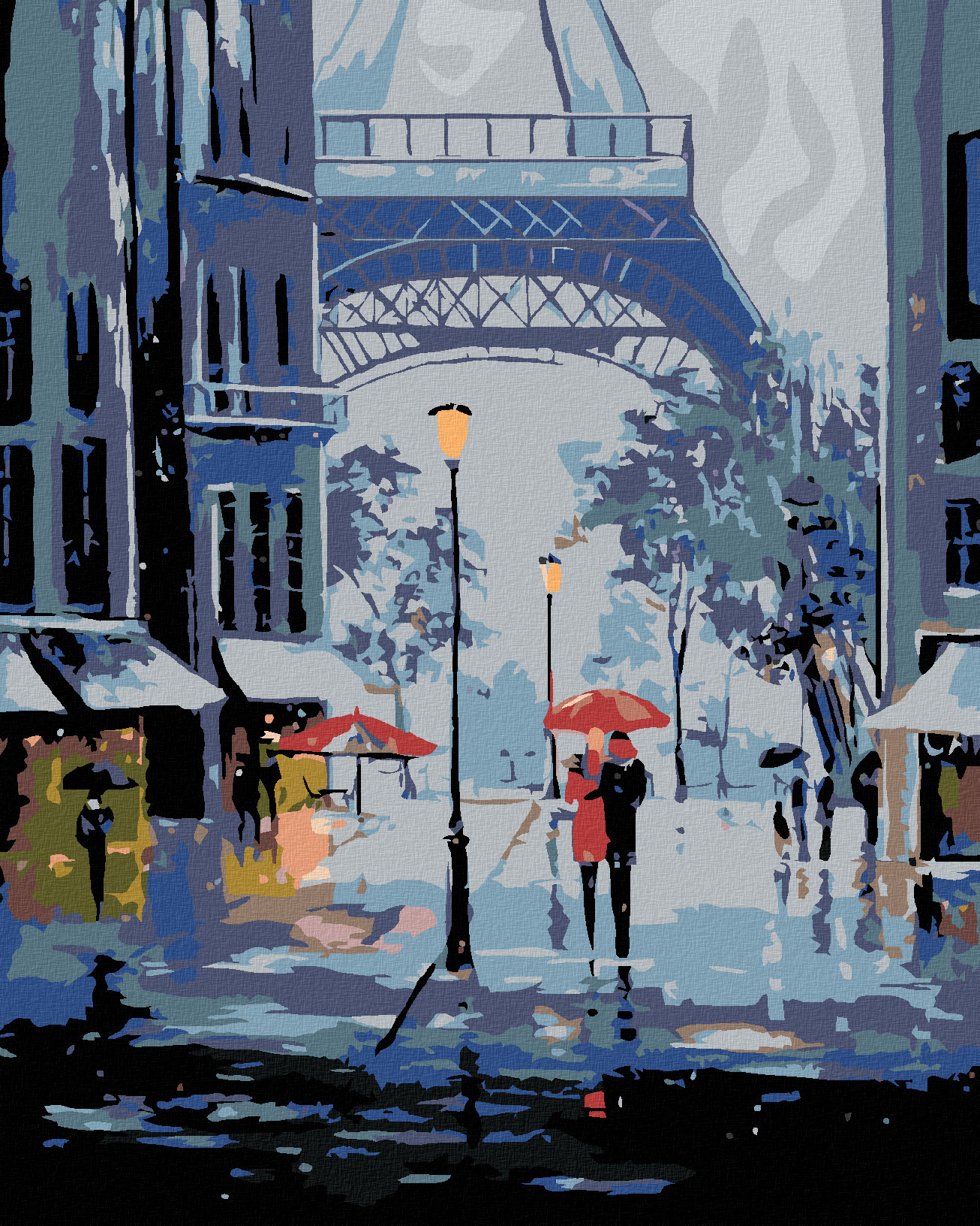 Malování podle čísel - ZIMA A EIFFELOVA VĚŽ - 80x100 cm, vypnuté plátno na rám