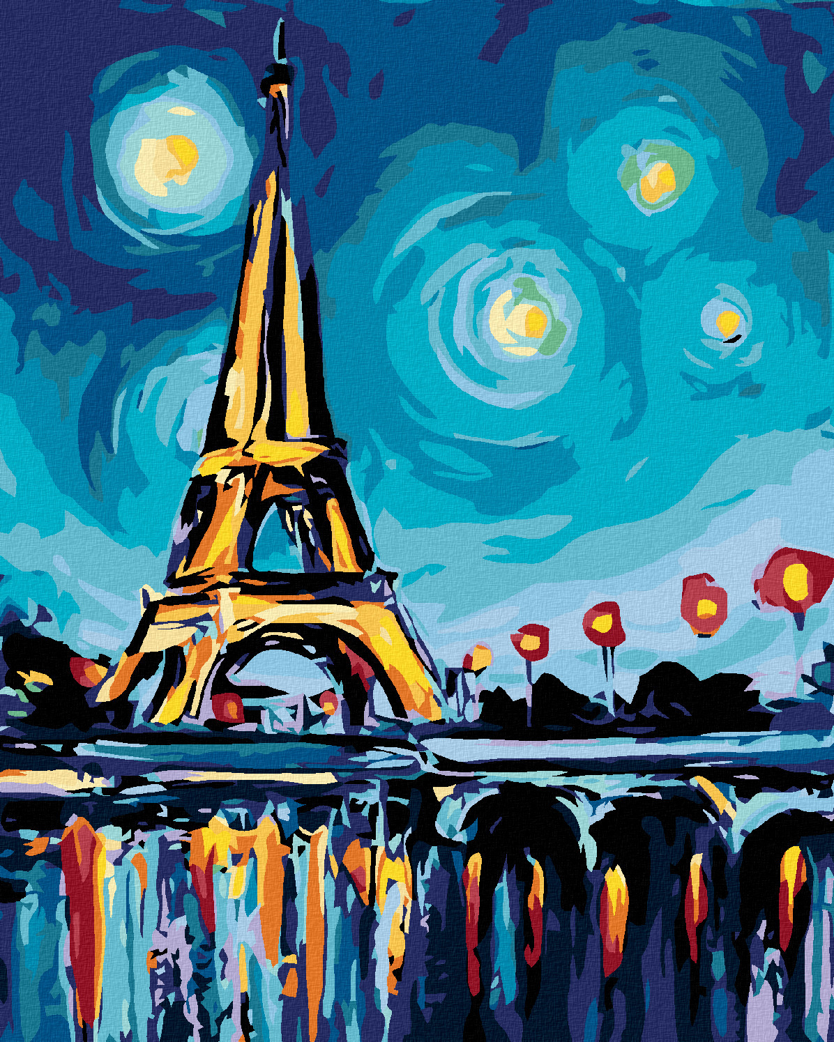 Malování podle čísel - EIFFELOVKA S HVĚZDAMI - 40x50 cm, bez rámu a bez vypnutí plátna
