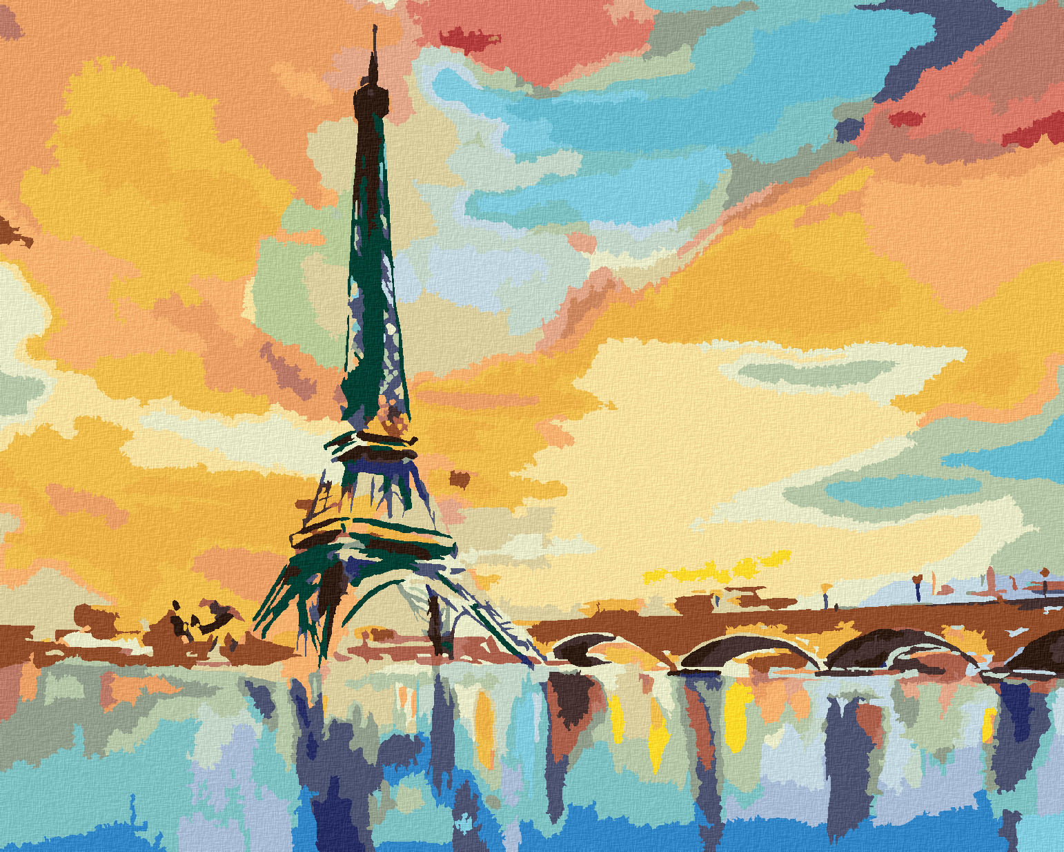Malování podle čísel - EIFFELOVA VĚŽ A MOST - 80x100 cm, bez rámu a bez vypnutí plátna