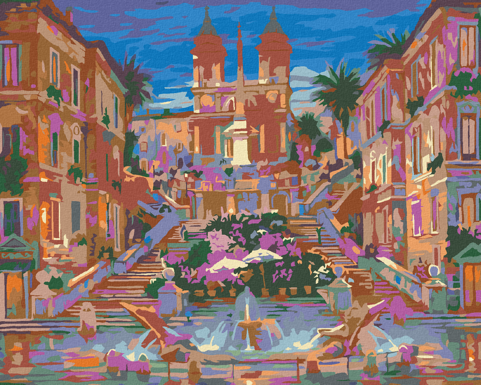 Malování podle čísel - FONTÁNA A KVĚTINY POD PALÁCEM - 40x50 cm, vypnuté plátno na rám