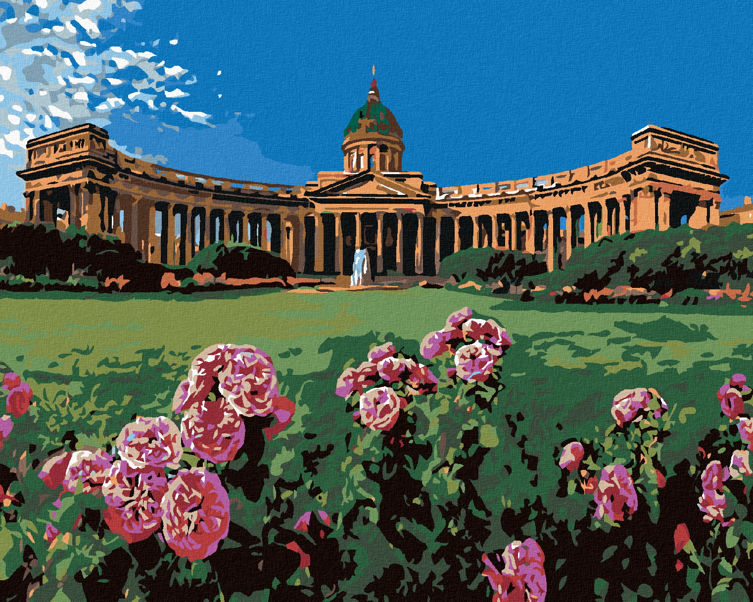 Malování podle čísel - ANTICKÁ STAVBA V ROZKVETLÉ ZAHRADĚ - 80x100 cm, bez rámu a bez vypnutí plátna