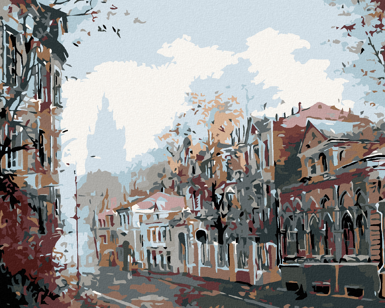 Malování podle čísel - TEMNÉ MĚSTEČKO - 40x50 cm, vypnuté plátno na rám