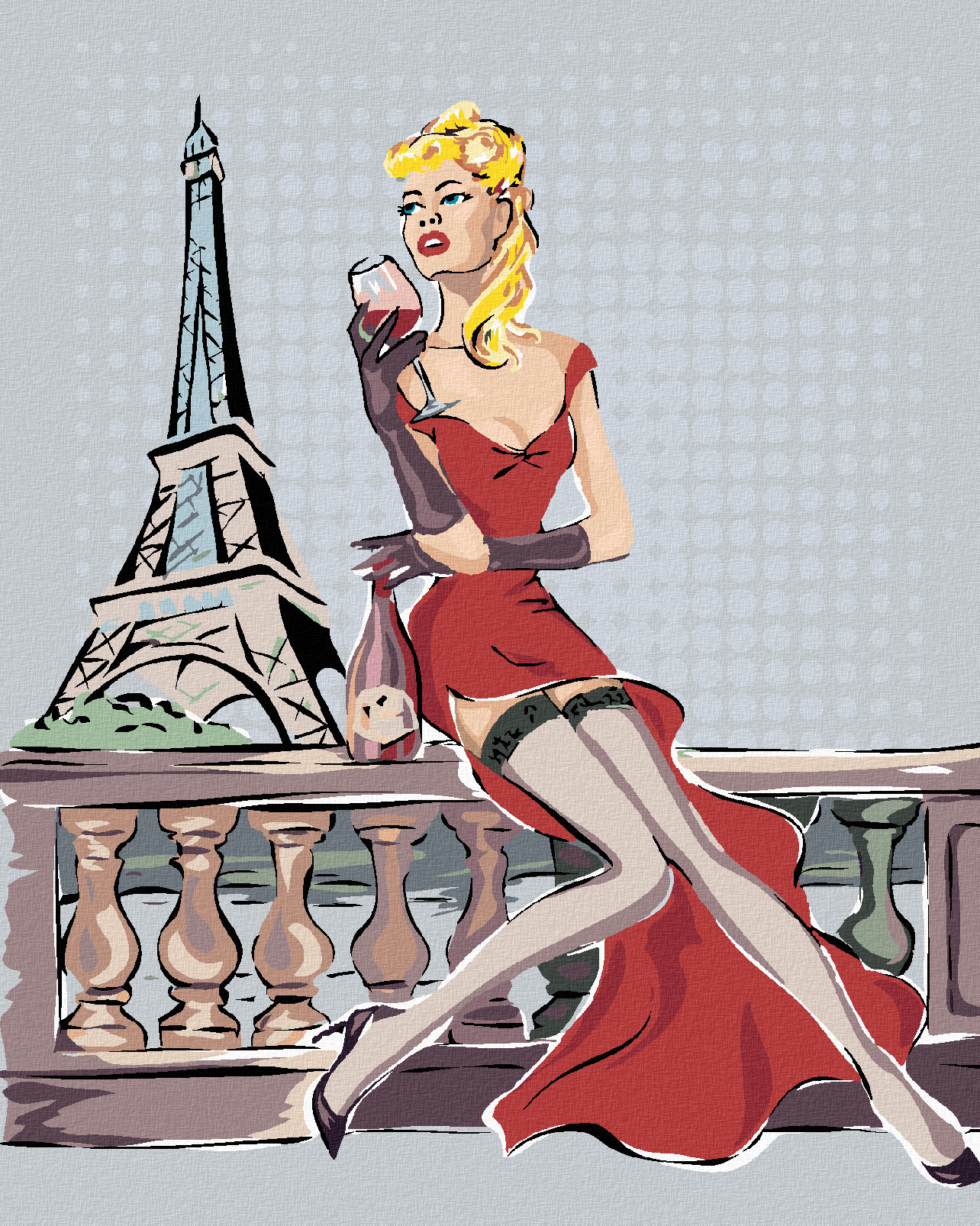 Malování podle čísel - EIFFELOVA VĚŽ A ŽENA SE SKLENIČKOU - 40x50 cm, bez rámu a bez vypnutí plátna