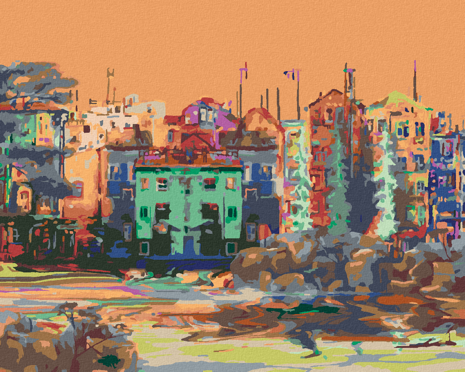 Malování podle čísel - BAREVNÉ DOMY - 40x50 cm, bez rámu a bez vypnutí plátna
