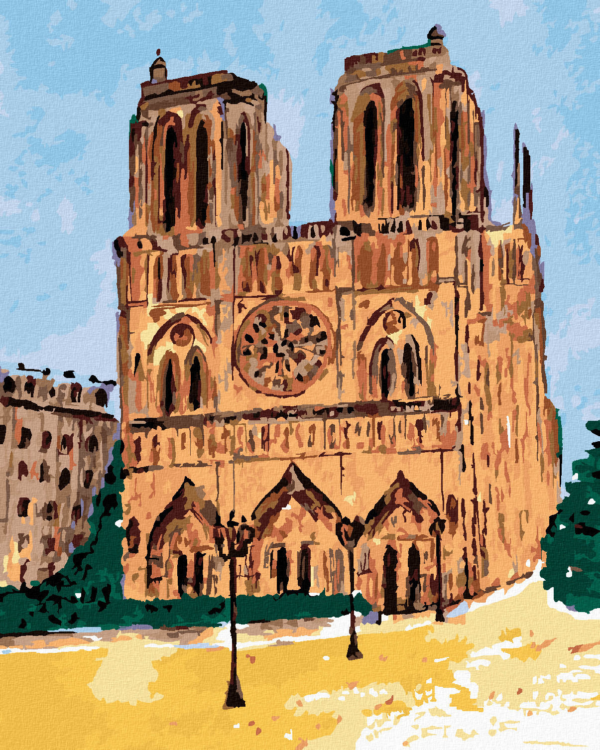 Malování podle čísel - NOTRE DAME V PAŘÍŽI ZA JASNÉHO DNE - 40x50 cm, bez rámu a bez vypnutí plátna